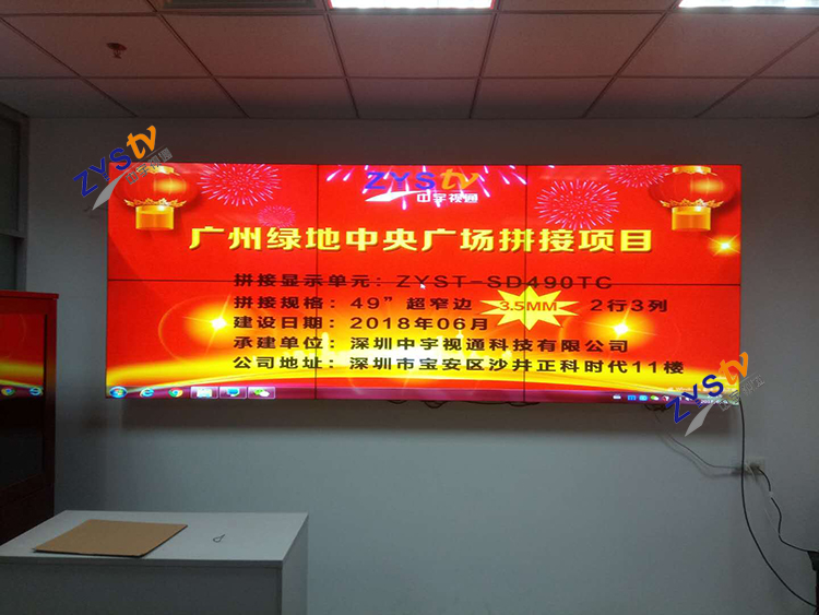 廣州綠地中央廣場(chǎng)采用中宇視通49寸2*3拼縫3.5mm拼接屏項(xiàng)目安裝調(diào)試完成。